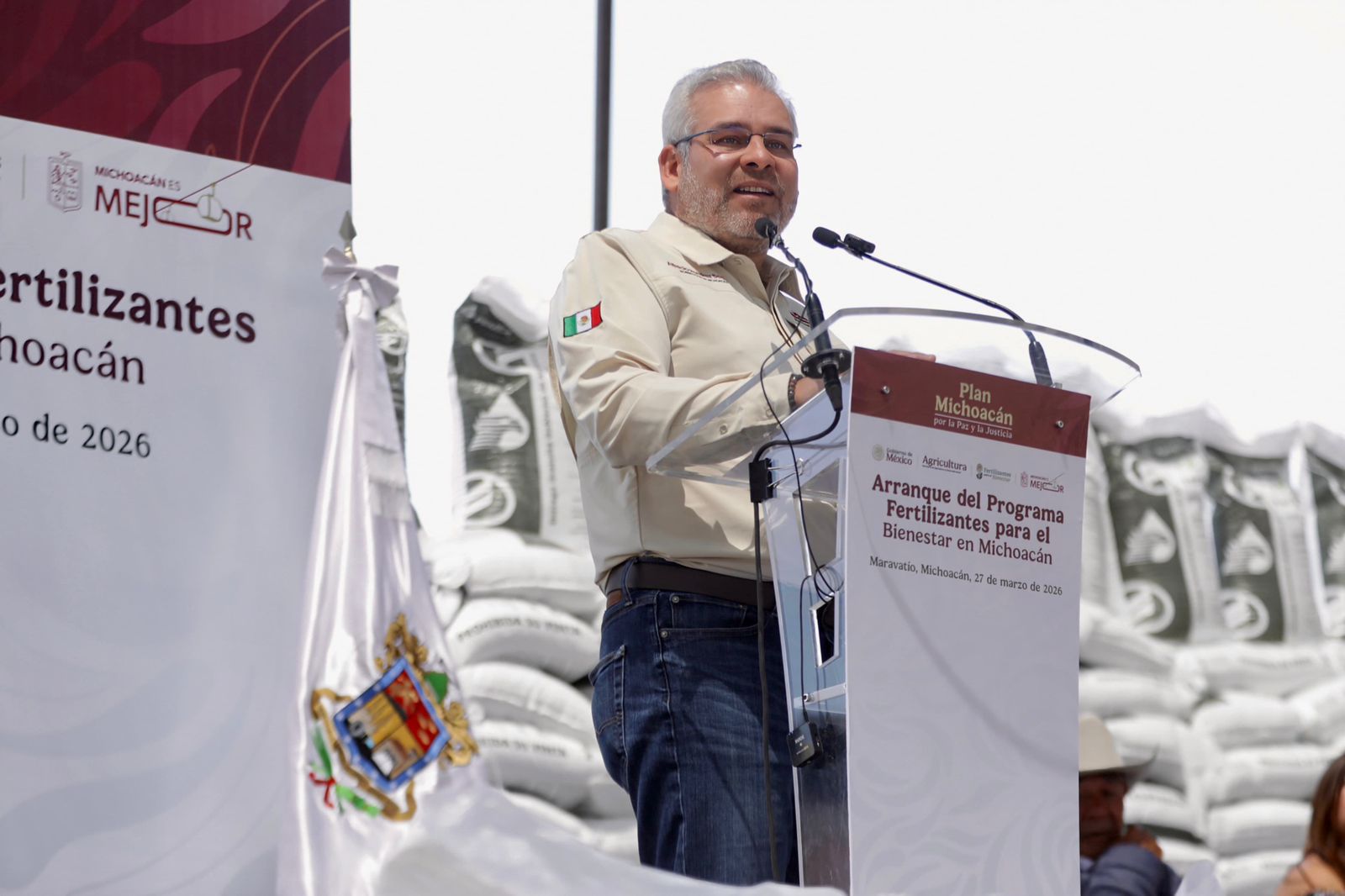 Maravatío, Michoacán, 27 de marzo de 2026.- El gobernador Alfredo Ramírez Bedolla junto con Julio Berdegué Sacristán, secretario de Agricultura y Desarrollo Rural, dieron arranque al Programa Fertilizantes para el Bienestar 2026, el cual se entregará este año de manera gratuita a 90 mil productores de todo el estado para cubrir cerca de 140 mil […]