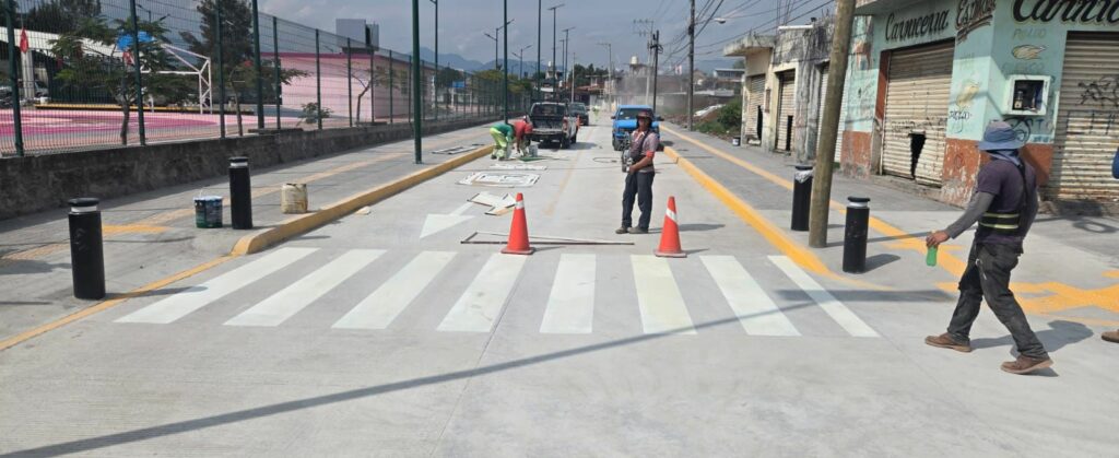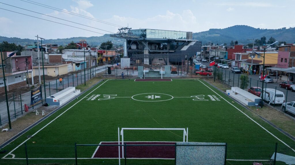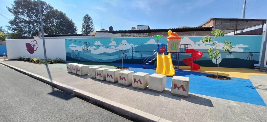 La funcionaria estatal precisó que, en promedio, la construcción de las obras complementarias presenta un avance del 80 por ciento, reflejado en la edificación de áreas recreativas, cruces seguros, unidades deportivas, rehabilitación de calles y un skatepark.