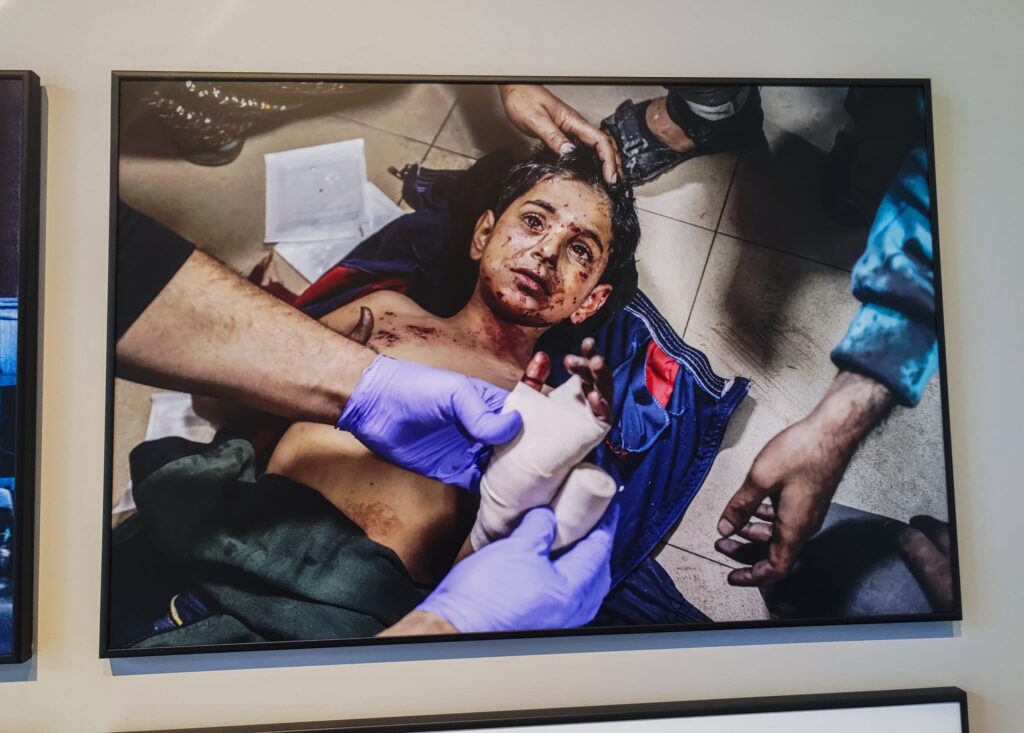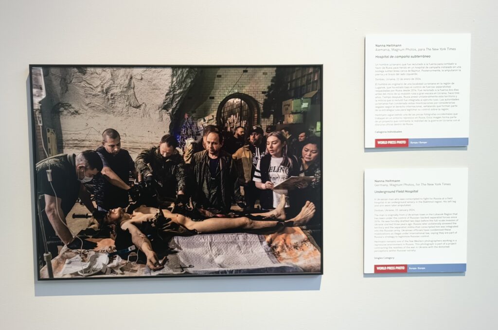 “Lo que vemos en Gaza es el conflicto más mortífero para los periodistas en el mundo”, dice Babette Warendorf, directora de Exposiciones de World Press Photo, al concluir el recorrido para prensa. Sus palabras no son retórica. Según el Comité para la Protección de los Periodistas (CPJ), 2024 fue el año más letal jamás registrado para la profesión: 103 periodistas asesinados en 18 países, la mayoría en Gaza, y muchos mientras cubrían el conflicto sin siquiera chaleco o casco.