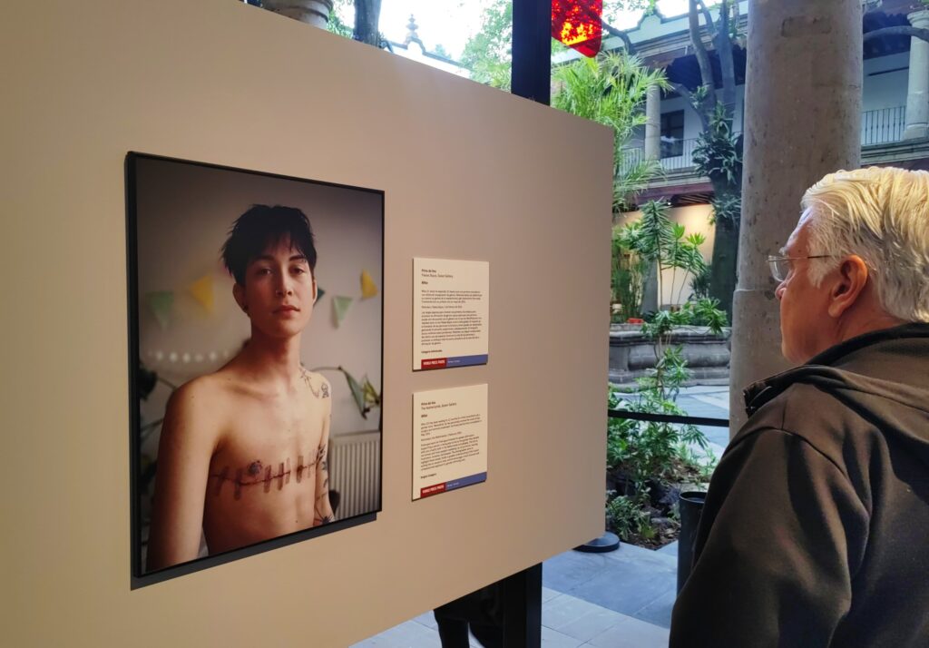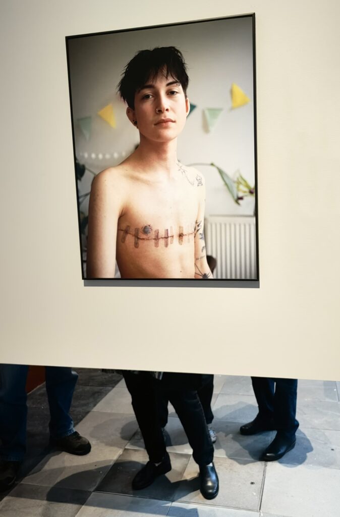 Como el retrato de Mika, joven no binarie de 21 años, quien esperó 22 meses por una cita médica para comenzar su transición de género en Países Bajos. Mientras tanto, costeó por su cuenta la mastectomía y la terapia hormonal. La imagen, tomada con cuidado y respeto, visibiliza la violencia institucional que enfrentan las personas trans y no binarias incluso en sociedades consideradas progresistas.