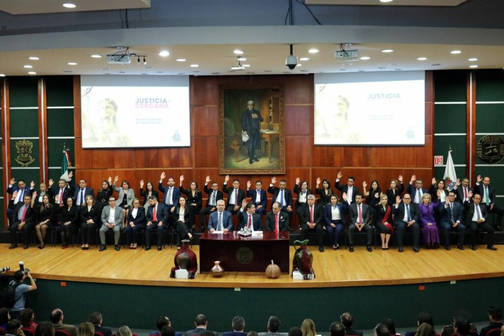 El magistrado presidente resaltó como uno de los pilares de esta nueva etapa la regionalización de la justicia, con la puesta en marcha, contra todo pronóstico, de 16 Salas Regionales en Apatzingán, La Piedad, Lázaro Cárdenas, Morelia, Uruapan, Zamora y Zitácuaro, acercando la segunda instancia a la ciudadanía, reduciendo tiempos y costos, y fortaleciendo la confianza institucional.