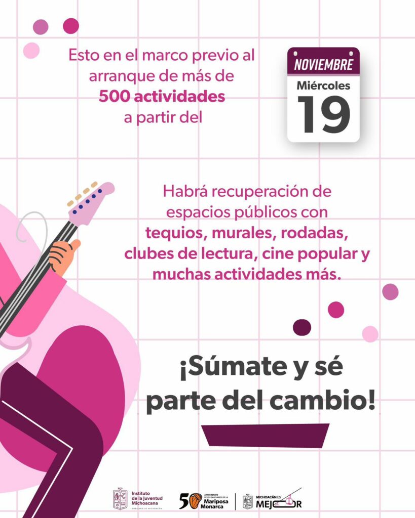 El Instituto de la Juventud Michoacana (Ijumich), dirigido por Lenin López García, y el Instituto Mexicano de la Juventud (Imjuve) implementarán un programa integral en todo el estado, que tiene como principal objetivo la reconstrucción del tejido social en Michoacán, priorizando las opiniones, necesidades y el sentir de las juventudes.