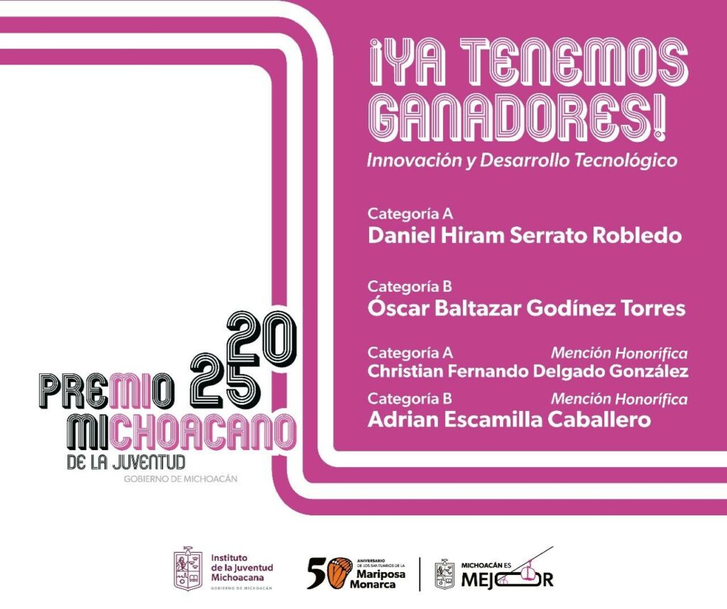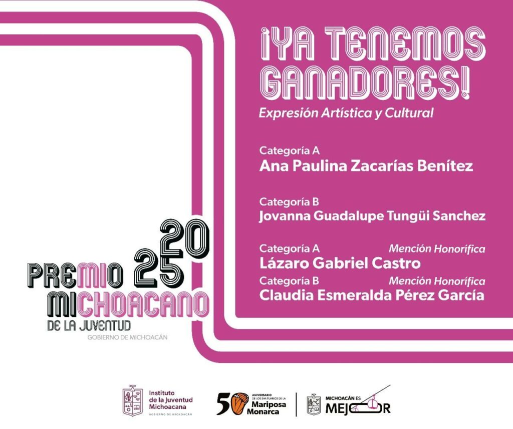El Instituto de la Juventud Michoacana (Ijumich), dio a conocer de manera oficial la lista de las y los jóvenes galardonados con el Premio Michoacano de la Juventud en su edición 2025.
