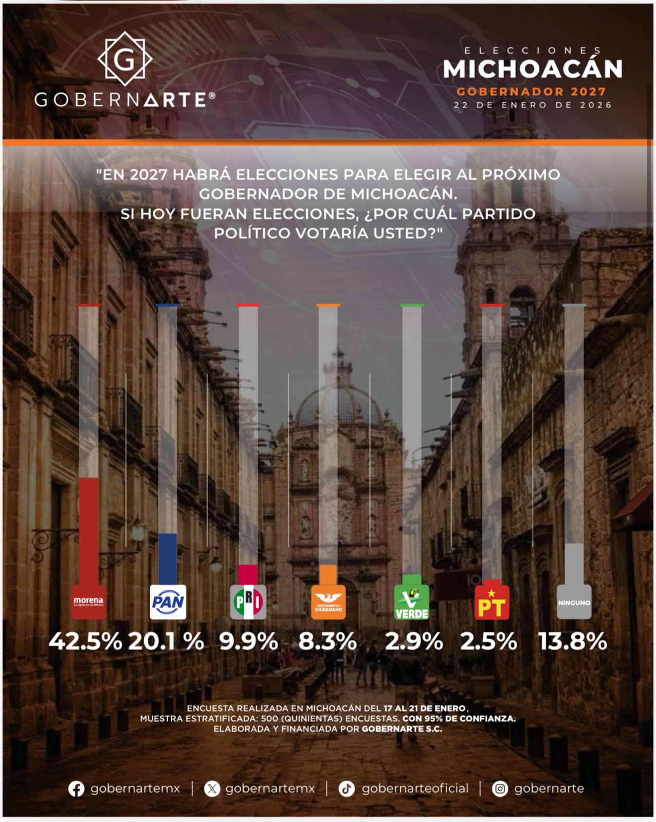 Se habla de que la victoria estaría prácticamente garantizada para Gladyz Butanda debido a que Morena presenta una ventaja de 42.5 puntos en las preferencias del electorado michoacano.