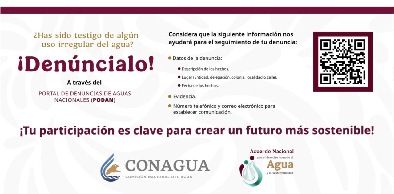 El delegado de Conagua en Michoacán, Luis Roberto Arias Reyes, destacó la importancia de la participación ciudadana para combatir prácticas ilegales que afectan el acceso y la disponibilidad del líquido. Por ello, se habilitó la plataforma web https://app.conagua.gob.mx/podan/ para recibir las denuncias ciudadanas al respecto.