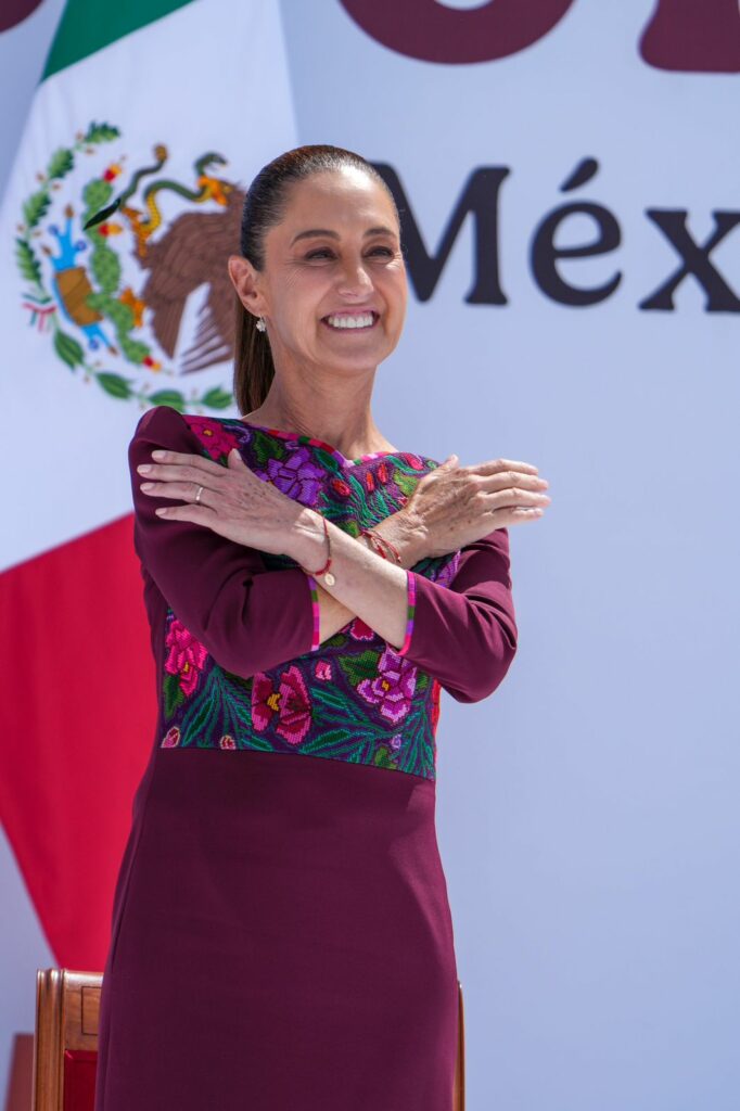 Destacó que 13.5 millones de mexicanos salieron de la pobreza entre 2018 y 2024, y que en su primer año el homicidio doloso se redujo 32%, lo que equivale a 27 asesinatos diarios menos. Reiteró que México no permitirá injerencias extranjeras y aseguró que en 2030 no habrá reelección.