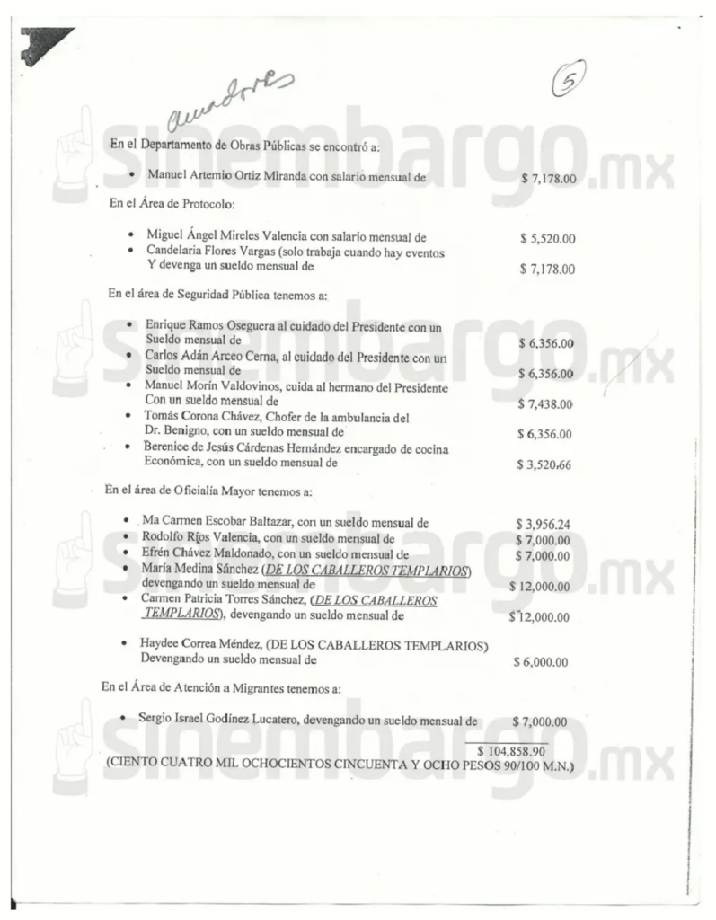 El alcalde de Tepalcatepec, Guillermo Valencia Reyes, tenía en nómina al menos a tres personas ligadas a Los Caballeros Templarios, incluso a su hermano René.