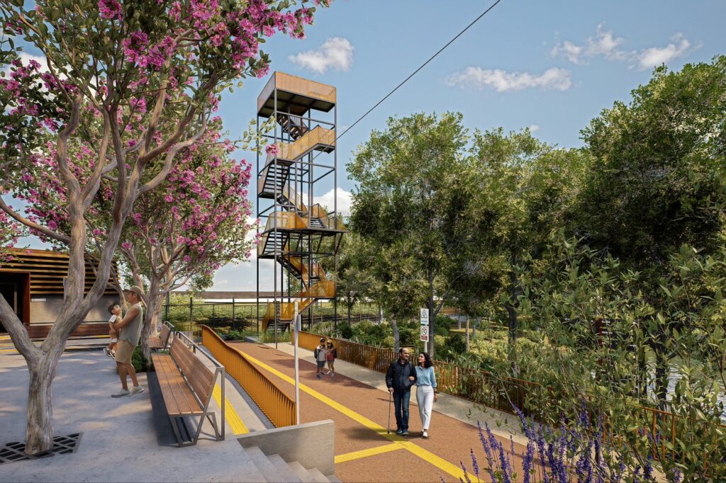 En el último recorrido de supervisión de la obra, la funcionaria estatal revisó el montaje del equipamiento y áreas del parque ecoturístico, donde además se habilitará un sendero seguro y puente, así como guía podotáctil, canchas de básquet, quioscos, foro de eventos y juegos infantiles.